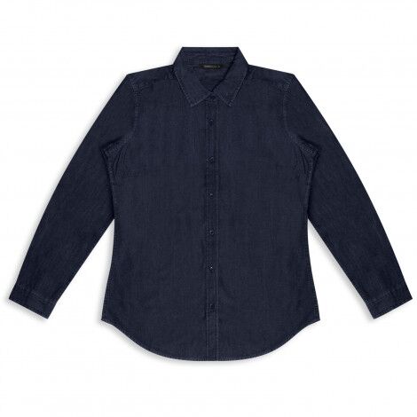 Stylish cut and sewn women’s shirt made from soft 150gsm cotton denim, perfect for retail and hospitality workplaces. The shirt features long sleeves with single button cuffs, a seven-button placket, a classic collar, and darts on the back. Available in seven sizes, the shirt should be washed with similar colours before first use.