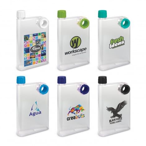 Futuristic 400ml notebook-shaped water bottle which bevelled so it is easy to carry. It easily slides into bags alongside books, laptops and folders. It has a secure screw on lid and a handy finger grip with a soft-touch silicone liner. It is manufactured from AS plastic with a polypropylene lid. This product is not dishwasher safe and handwashing