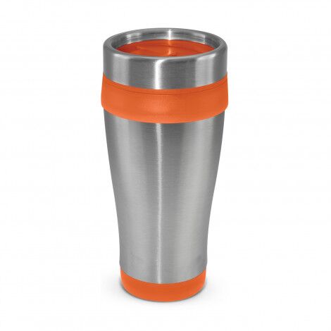 Contoured 350ml double wall travel mug which will keep drinks hot for longer. It has a stainless steel outer wall and a polypropylene inner wall. Aspen has a secure screw on lid with a splashproof sliding closure. It laser engraves to a natural etch and is BPA-free. This product is not dishwasher safe and handwashing is recommended.
