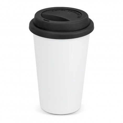 350ml double wall ceramic coffee cup which is manufactured for full colour wrap around branding. The double wall keeps drinks hot for longer and remains comfortable to hold. This product is not dishwasher safe and handwashing is recommended.
