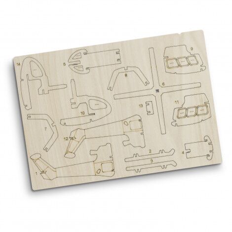Step into a world of creativity and craftsmanship with BRANDCRAFT’s wooden models. Designed to unleash the inner child in any audience, this model helicopter is expertly laser cut from an A4 sheet of Basswood, a lightweight and strong wood perfectly suited for crafting. The interlocking design means that pieces easily slot together and no tools are needed for assembly. Presented in a brandable cardboard sleeve with assembly instructions, this is an engaging promotional product or gift for adults and children alike. Add your brand to the natural Basswood material or add your brand and colours to the default digital template to bring your brand to life.