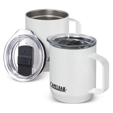 CamelBak is recognised as a global leader for designing and manufacturing innovative hydration solutions that last a lifetime. This classic double wall, vacuum insulated stainless steel mug has a capacity of 350ml and keeps drinks cold for six hours or hot for up to four hours. It has a tough powder coated finish and a comfortable easy-grip handle. Horizon has a smart push on lid with a secure silicone seal and a spill-resistant Tri-mode sliding closure that controls the beverage flow when open. A non-slip silicone base provides a soft landing on surfaces to avoid scratches and spills. The CamelBak logo is printed on the mug and debossed on the lid. Horizon is BPA-free and laser engraves to a shiny steel finish. It is presented with a leaflet that contains care information and the Got Your Bak lifetime guarantee details. This product is not dishwasher safe and handwashing is recommended.