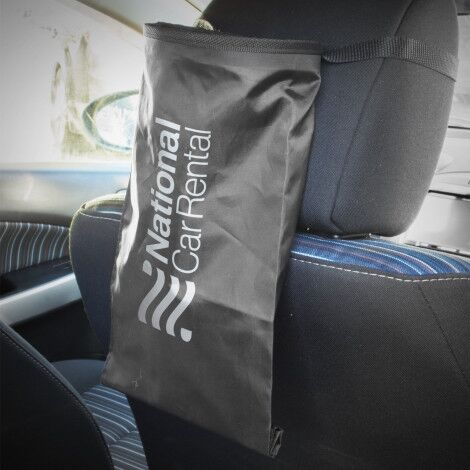 Reusable rubbish bag which is ideal for use in cars, boats, trucks, heavy machinery cabs etc. It is manufactured from robust 210D polyester and features a secure Velcro base closure which makes emptying it very easy. Other features include an adjustable woven strap with a snap lock release and an expandable opening which allows the bag to hold larger items like bottles and cans. A simple instruction leaflet is included.