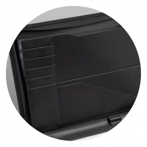 - Internal pen loops, passport/ticket holder, tablet slip pocket and six business card holders