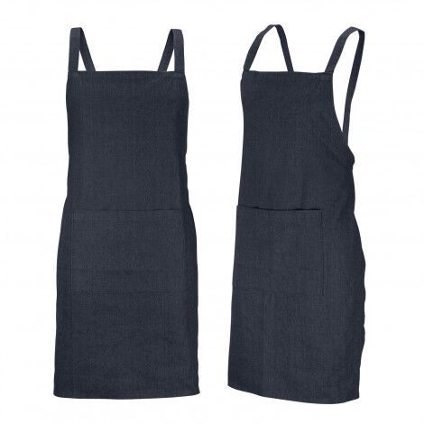 Fashion inspired 280gsm denim apron with metal eyelets and a pocket on the front.