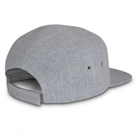 Stylish, five panel cap with a flat peak and a two-tone heather finish. It is made from acrylic and has smart silver eyelets, a sweatband and an adjustable velcro closure which allows one size to fit most people.