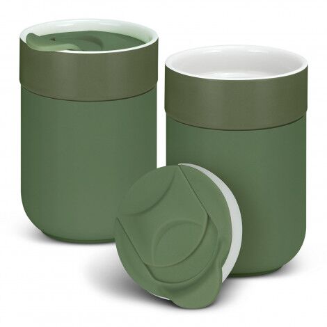 Fashion-inspired 300ml ceramic coffee cup that has a heat-resistant silicone casing. The slide-closure lid insert can be easily taken in and out. This product is not dishwasher safe and handwashing is recommended.