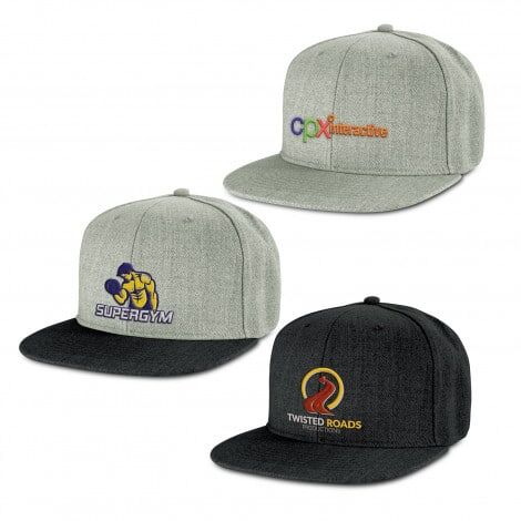 Premium structured six panel cap which is made from polyester. Features include a flat peak, embroidered eyelets, a sweatband and an adjustable snap back closure that allows one size to fit most people.