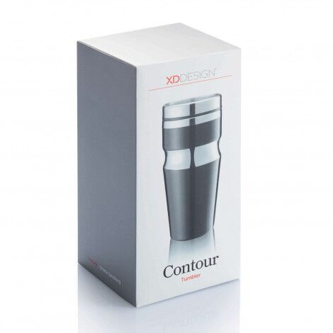 Sophisticated XD design is evident in this outstanding 350ml double wall tumbler which will keep drinks hot for longer. It has a stainless steel outer wall and a polypropylene inner wall. The tumbler has delightful shiny chrome accents and a secure push on lid with a splashproof sliding closure. It is BPA-free, laser engraves to a shiny steel finish and is beautifully presented in an XD gift box. This product is not dishwasher safe and handwashing is recommended.
