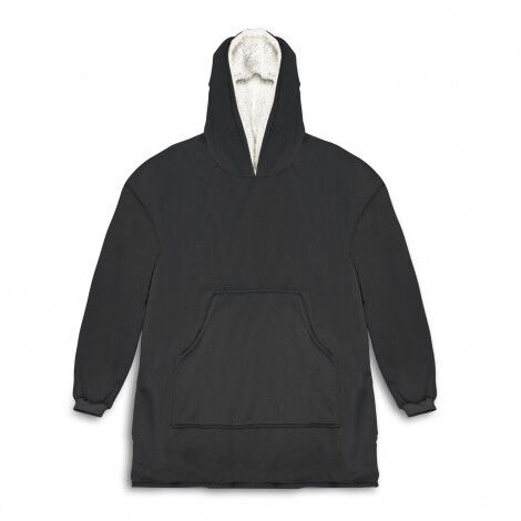 Extra-cosy blanket hoodie made from comfortable brushed 220gsm polyester jersey with a soft 180gsm sherpa lining for added warmth. The hoodie features a large kangaroo pocket on the front, providing a large branding area for vibrant, full colour artwork and one size will fit most.