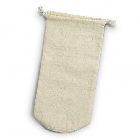 A drawstring gift bag that is manufactured from 120gsm cotton made to fit standard drink bottle.