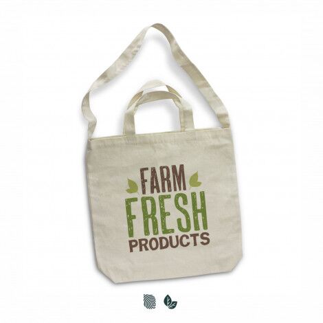 Versatile cotton bag with a large gusset which is manufactured from strong 220gsm natural cotton and can be carried on the shoulder or as a tote bag.