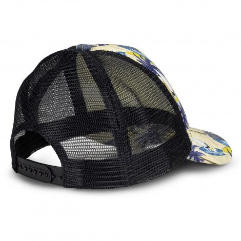 Premium structured five panel trucker cap with a customisable padded polyester front panel and pre-curved peak. It has breathable mesh panels, a sweatband and an adjustable snap back closure which allows one size to fit most people. Embroidery is available for an additional charge. A production lead time of 35 working days applies to this product by air freight and larger orders can be sea freighted on request to reduce the freight cost.