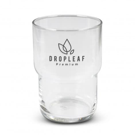 Art-deco inspired 460ml glass tumbler with a stackable design. This tumbler is made with soda lime glass and can be presented in an optional natural gift box.