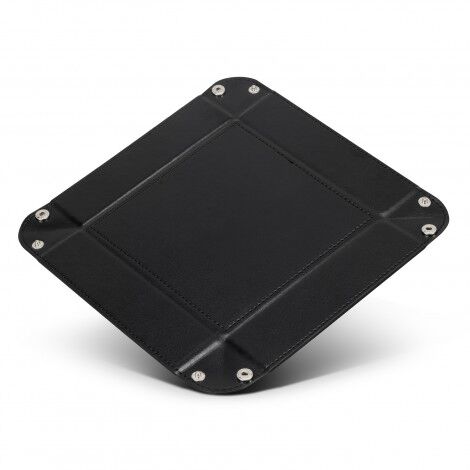 Compact valet tray made from stylish leather-look PU. This versatile tray easily collapses and can be reconstructed using snap fasteners, and is ideal for holding keys, trinkets or playing dice games.