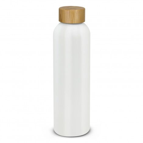 Sophisticated 600ml aluminium drink bottle with a timeless design and a smart painted finish. It is BPA-free, has a secure bamboo screw on lid and can be presented in an optional black gift box.