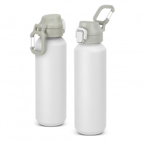 Extremely lightweight, BPA free, 600ml drink bottle made from recycled aluminium. It features a push-button cap with a secure lock mechanism and a built-in colour-matched carabiner for easy carrying or attachment to a bag. It is the perfect companion for work, travel, or outdoor adventures – practical and stylish.