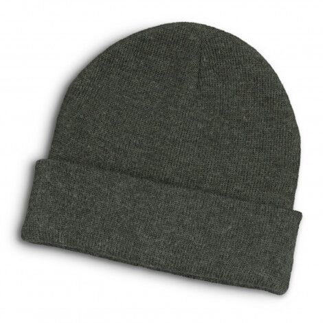 - Warm beanie made using heather-style acrylic yarn
