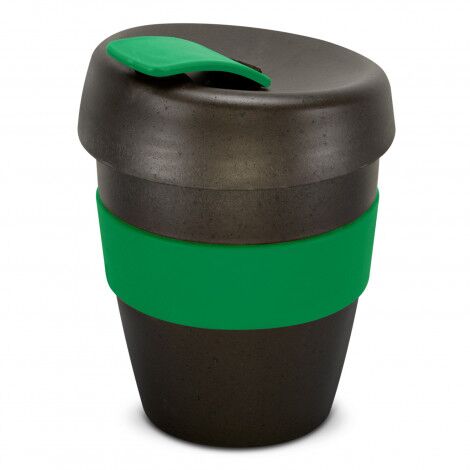 Design inspired 350ml reusable coffee cup that has an incredible story to tell. It is manufactured from a 50/50 blend of coffee grind and BPA-free polypropylene. It has a heat-resistant silicone band and a secure screw on lid with a splashproof flip closure. The flip closure and band can be mixed and matched in any colour combination from the standard colours. Up to five different colour combinations are included in the price and more are available for an additional charge. An optional natural gift box is available on request. This product is not dishwasher safe and handwashing is recommended. Express Cup ReGrind is protected under New Zealand Design Registration No. 419451 and Australian Design Registration No. 361937.