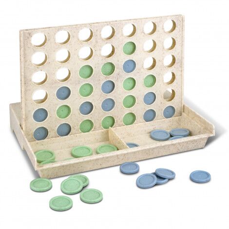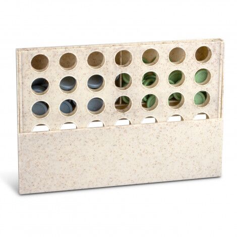 Classic two-player game of 4 in a Row where you are trying to beat your opponent to get four of the same colour dots in a row. The game and instructions are presented in an individual kraft box. The game is manufactured from a 50/50 blend of natural wheat straw fibre and BPA-free polypropylene.