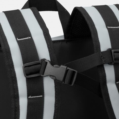 A stylish 15L cooler totepack designed for outdoor adventures. Made from two-tone water-resistant tarpaulin fabric, it keeps contents cool, secure, and protected from the elements. Featuring a flat fold-down top with snap-release buckles, the main compartment is insulated with PE foam encased in a water-resistant PEVA lining. Padded carry straps provide support and hands-free convenience, while the large front pocket offers a high-impact branding area. Presented with a Frontier hangtag.