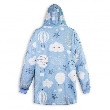 Wrap yourself in complete comfort with our extra-cosy blanket hoodie, made from polyester flannel and lined with an equally soft sherpa for ultimate warmth. This plush wearable blanket features a generously sized kangaroo pocket on the front, perfect for keeping your hands warm or stashing your essentials. Designed in a versatile one size fits most style and cuffed sleeves for a snug fit, it’s an ideal choice for cosying up at home or staying warm on a chilly day out. Best of all, the blanket hoodie offers a large, full colour branding area, ensuring maximum brand visibility and making it an excellent promotional item. The lead time on this product is 14-16 weeks.