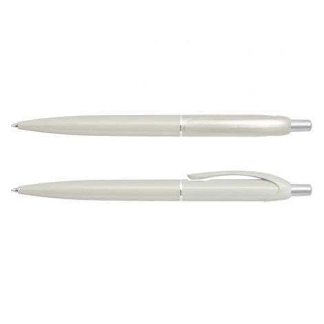 - Retractable plastic ballpoint pen with shiny chrome trim