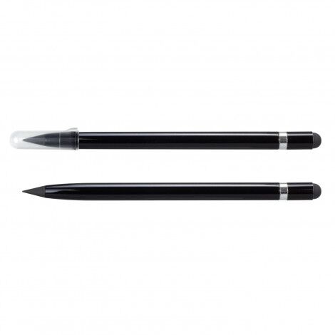 The aluminium Infinity Inkless Pen has a unique metal alloy tip that deposits small amounts of metal onto the page and has a writing distance of up to 5000m. This pen features shiny chrome trim, a stylus and an eraser. With no sharpening or refills needed, this is an excellent environmentally conscious option.