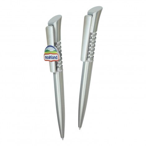 Eye-catching plastic ballpoint pen with shiny chrome trim and a retractable spring mechanism in the upper barrel. It has a stunning custom moulded clip that can be branded in spot or full colour. It has the choice of a blue or black X20 jumbo refill with 1800 metres of German manufactured Dokumental ink. A production lead time of 30 working days applies to this product by air freight.