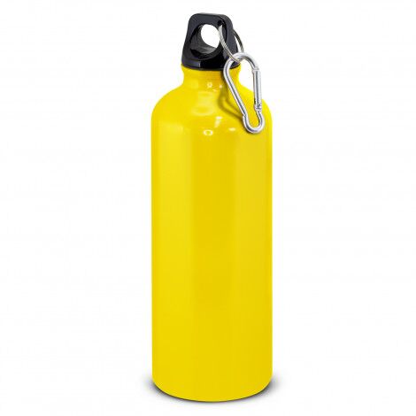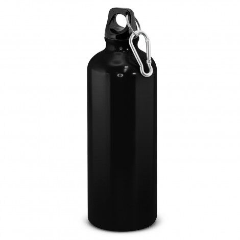 800ml aluminium bottle which is BPA-free and has a secure screw on lid. The lid has a finger-sized carry handle and a carabiner so the bottle can easily be attached to a bag. This product is not dishwasher safe, and handwashing is recommended.