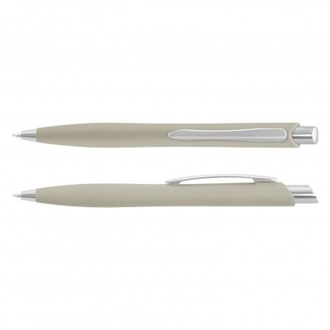 - Retractable plastic ballpoint pen with a soft-touch matte finish