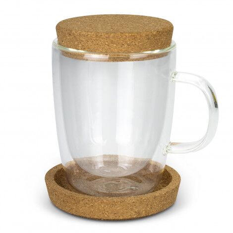 - Natural cork lid and a coaster that is heat resistant