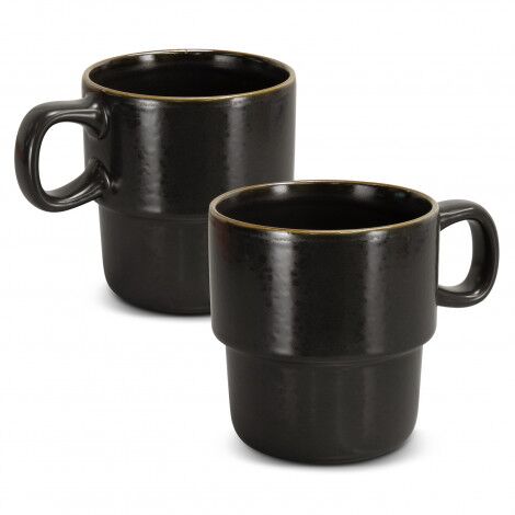 Set of two rustic 350ml stackable ceramic mugs. Featuring a unique mottled glaze and metallic rim detail, the stackable design makes for convenient, easy storage – perfect for any kitchen or office. Beautifully presented in a natural kraft gift box with a Keepsake branded sleeve.