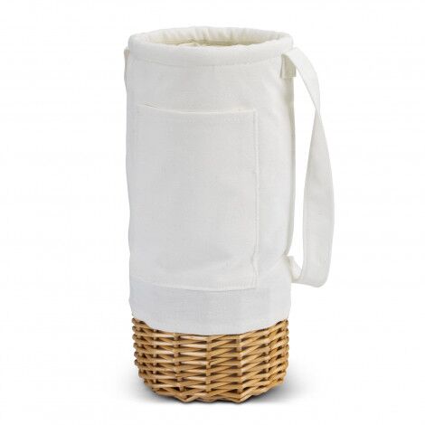 This premium wine carrier made from 380gsm cotton canvas and natural willow wicker provides a unique wine presentation option. With foam padding to insulate and protect wine bottles and a wicker base for added strength, this will fit most wine bottles and is ideal for gifting and outdoor events. The carrier has a woven cotton carry handle, a drawstring closure and a slip pocket.