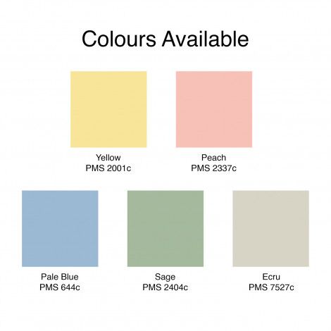 Ecru, Yellow, Peach, Sage, Pale Blue.