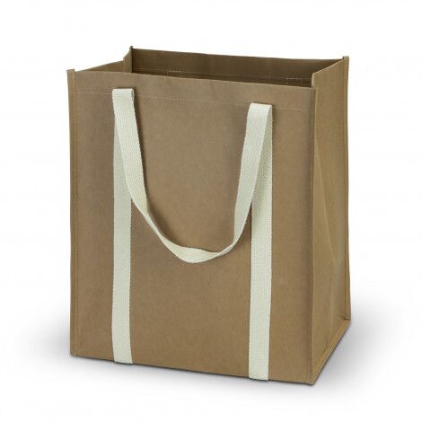 Washable 23L Kraft Tote Bag made of 350GSM kraft paper with 100% cotton webbing handles.