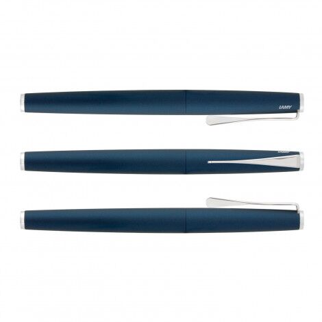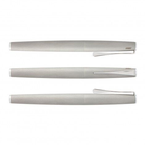 Elegant rolling ball pen with a brushed stainless steel barrel or a brass barrel with matte finish. This stunning pen has a unique propeller inspired clip with matching shiny chrome accents. It has a black LAMY M63 refill with 750 metres of writing ink is 100% made in Germany. The LAMY logo is engraved on the upper barrel and it is beautifully presented in a LAMY gift box.