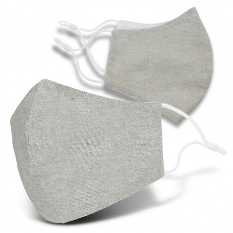 Premium Linen Face Mask which can be reused by hand washing it in warm water. This mask features a dart stitched into the front panel to create more structure, keeping the mask’s material away from the nose and mouth. It also has matching white ear loops with adjustable silicone toggles to ensure one size will fit most people. This mask provides protection with two layers of material manufactured from 90gsm linen. This face mask is manufactured for use in the home or for recreational or occupational use.