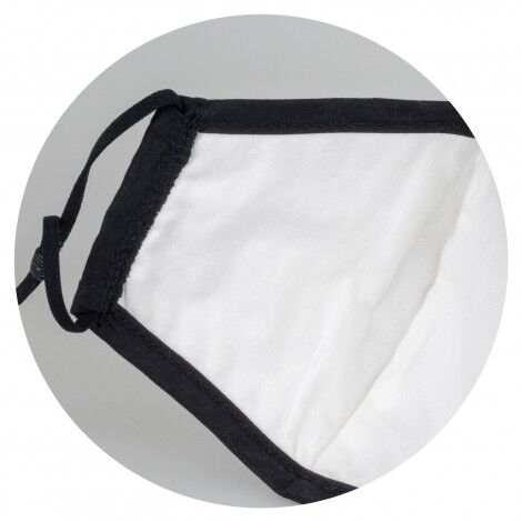 Premium face mask which can be reused by hand washing it in warm water. The Luxe mask features a nose wire to provide a more secure, comfortable fit. Luxe has matching black ear loops with adjustable silicone toggles to ensure one size will fit most people. The mask has seams stitched into the front panel to create more structure, keeping the material of the mask away from the nose and mouth. This mask is manufactured from a blend of cotton and polyester. This face mask is manufactured for use in the home or for recreational or occupational use. A care label is attached to the face mask.