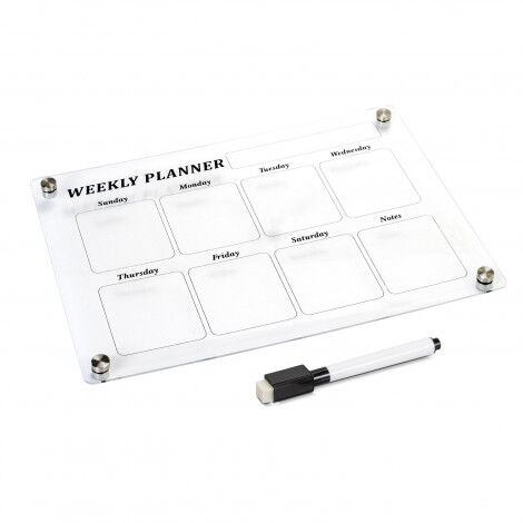 - Clear acrylic planner with a smooth, easy to write dry-erase surface