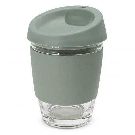 Fashion inspired 340ml reusable glass coffee cup with a secure push on silicone lid and a wide heat-resistant silicone band. The lid and band can be mixed and matched in any colour combination from the standard colours at no extra cost. Up to five different colour combinations are included in the price and more are available for an additional charge. Glass is a natural choice for a clean, pure taste and it is a reuasble alternative to single-use paper cups. Metro Cup is presented in an unbleached cardboard gift box with a window to show the branding and product care instructions are printed on one side. An optional gift tube is available for presentation. This product is not dishwasher safe and handwashing is recommended.