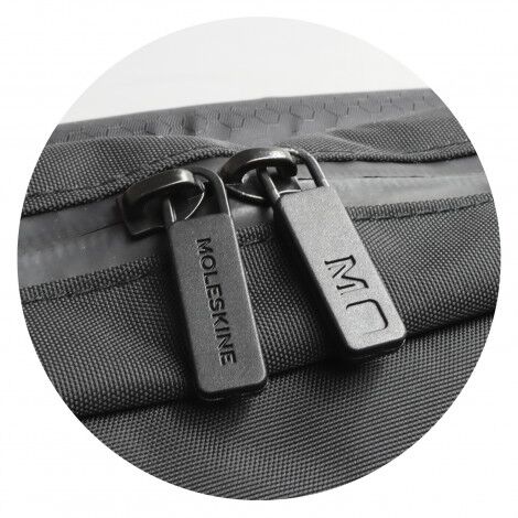 The Moleskine Metro Slim Backpack is an urban lightweight backpack designed to go with you everywhere and carry the day’s essentials. This luxury backpack features a flap with magnetic closure and a water-resistant zip to keep all your essentials safe. Inside, the backpack features an organizer, two pen holders, a business card holder, a secure pocket and an inner compartment to protect your laptop. The Metro Slim is fitted with an adjustable padded shoulder strap and breathable air-mesh back for exceptional comfort on the go and a rear luggage sleeve will slide over the handle of a rolling suitcase. A reflective Moleskine logo is sewn onto the leather-look PU base of the backpack. Please note this product cannot be supplied without the Moleskine logo. Moleskine reserves the right to decline any custom project or artwork that does not align with its brand on a case-by-case basis.