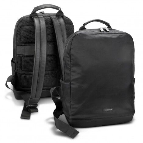 The Moleskine lightweight water-resistant backpack in smooth ripstop nylon is made for high-energy travelers and anyone who thinks creatively on the go. With its unstructured interior and padded compartment for devices up to 15-inch, this deluxe backpack makes space for all the belongings you never leave home without. It features a zippered main compartment, an internal zippered pocket, a notes pocket with two pen holders, a woven carry handle, and adjustable leather-look PU shoulder straps. A subtle rubber plaque with the Moleskine logo is visible on the front of the backpack. Please note this product cannot be supplied without the Moleskine logo. Moleskine reserves the right to decline any custom project or artwork that does not align with its brand on a case-by-case basis.