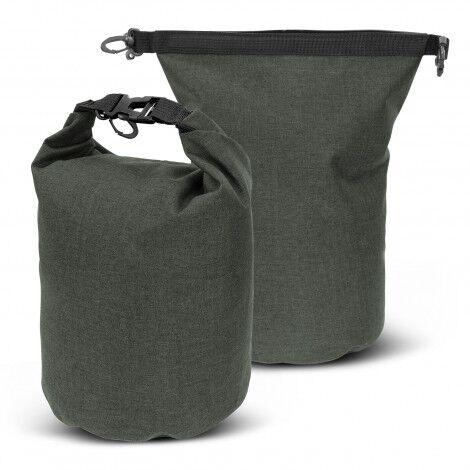 Water-resistant dry bag which is ideal for storing valuables and electronic devices in the outdoors and around water. It is manufactured from robust 300D polyester with heat sealed seams and a two-tone heather style finish. Simply roll down the top closure several times and close it with the snap lock for a water-resistant seal.