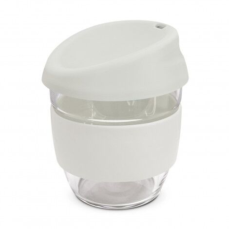 Elegant 250ml reusable borosilicate glass coffee cup with a secure push on silicone lid and a wide heat-resistant silicone band. Borosilicate is lightweight, exceptionally strong and shatter-resistant. It is a BPA-free choice for a clean, pure taste and is a natural alternative to single-use paper cups. The lid and band can be mixed and matched in any colour combination from the standard colours at no extra cost. Up to five different colour combinations are included in the price and more are available for an additional charge. Nova Cup is presented in an unbleached cardboard gift box with a window to show the branding and product care instructions are printed on one side. An optional gift tube is available on request. This product is not dishwasher safe and handwashing is recommended. Nova Cup is protected under New Zealand Design Registration No. 426637 and Australian Design Registration No. 201916426.