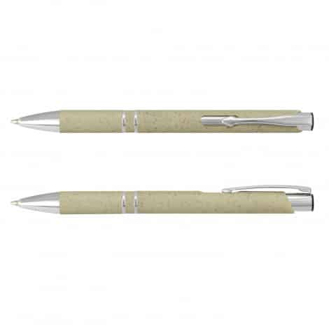 Retractable ballpoint made from a 50/50 blend of wheat straw fibre and ABS plastic with a matte finish and shiny chrome accents. It has a black large volume refill with 1200 metres of German manufactured Dokumental ink. Panama can be presented in an optional pen sleeve or a gift box.