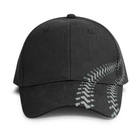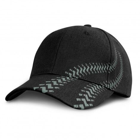 Perfect for racing and car enthusiasts, this fully customisable six-panel cap is made from cotton twill and features printed tyre tracks that run from the peak to the side of the cap. The colour of the cap fabric and the screen printed feature can be customised using colours from the standard colour palette. Other features include embroidered eyelets, a pre-curved peak, a sweatband and an adjustable snap closure which allows one size to fit most people. A production lead time of 35 working days applies to this product by air freight and larger orders can be sea freighted on request to reduce the freight cost.