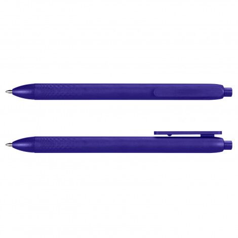 Retractable PLA ballpoint pen which has a contoured barrel and a colour match push button. It has a blue refill with 500 metres of writing ink. PLA is a thermoplastic that is derived from corn starch and sugar cane.