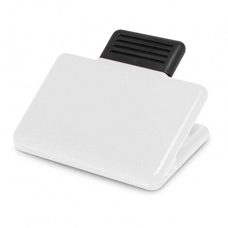 Rectangular clip with a strong magnet which will hold documents or notes on a fridge or any metal surface.