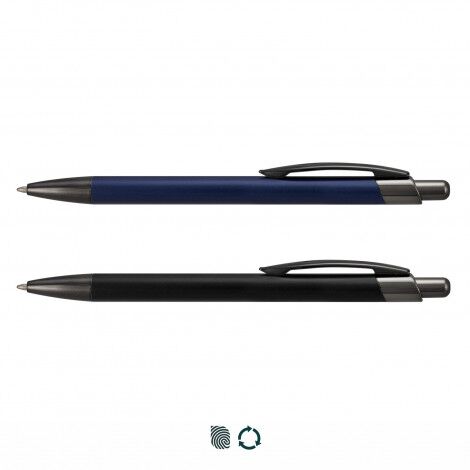 - Retractable recycled aluminium ballpoint pen with a gloss lacquered barrel
